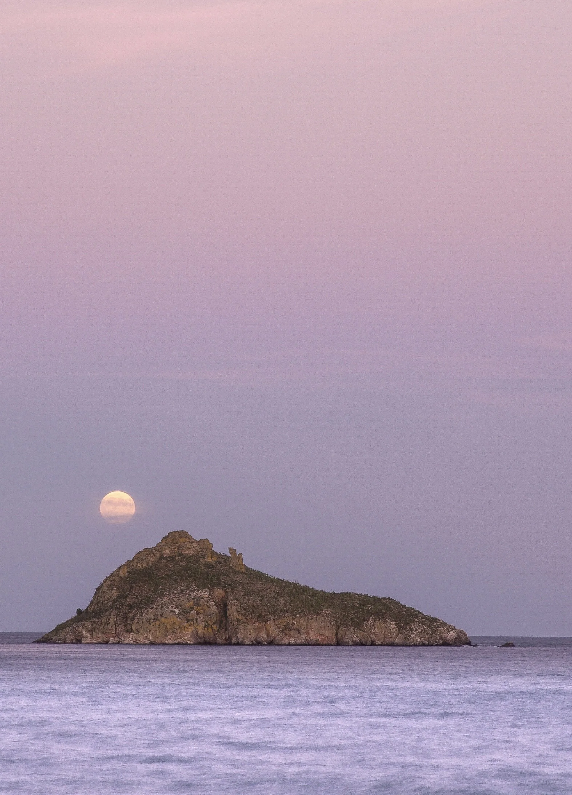 The Rising Moon Over Thatcher Rock , Torquay Devon
